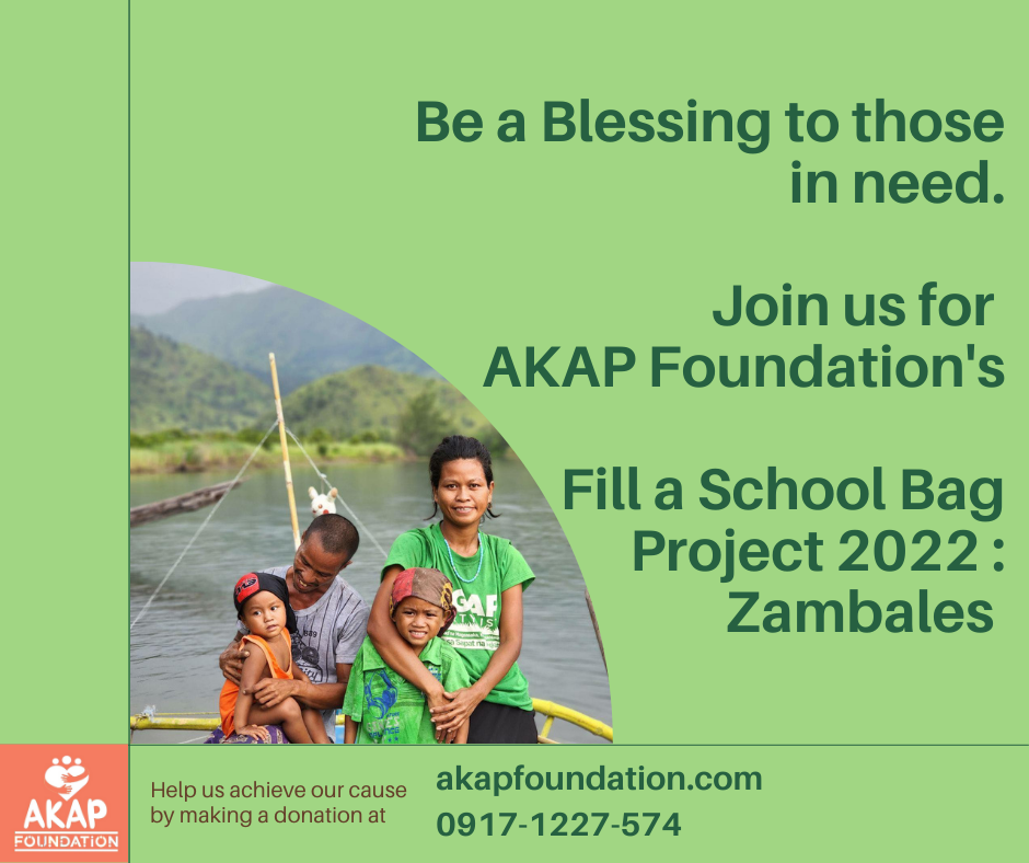 The Ang Katuparan ng Aking Pangarap Foundation, commonly known as the AKAP Foundation, was established in the Philippines in 2017 to improve the lives of children and elderly through providing school supplies, health care supplies, and other opportunities to these people.